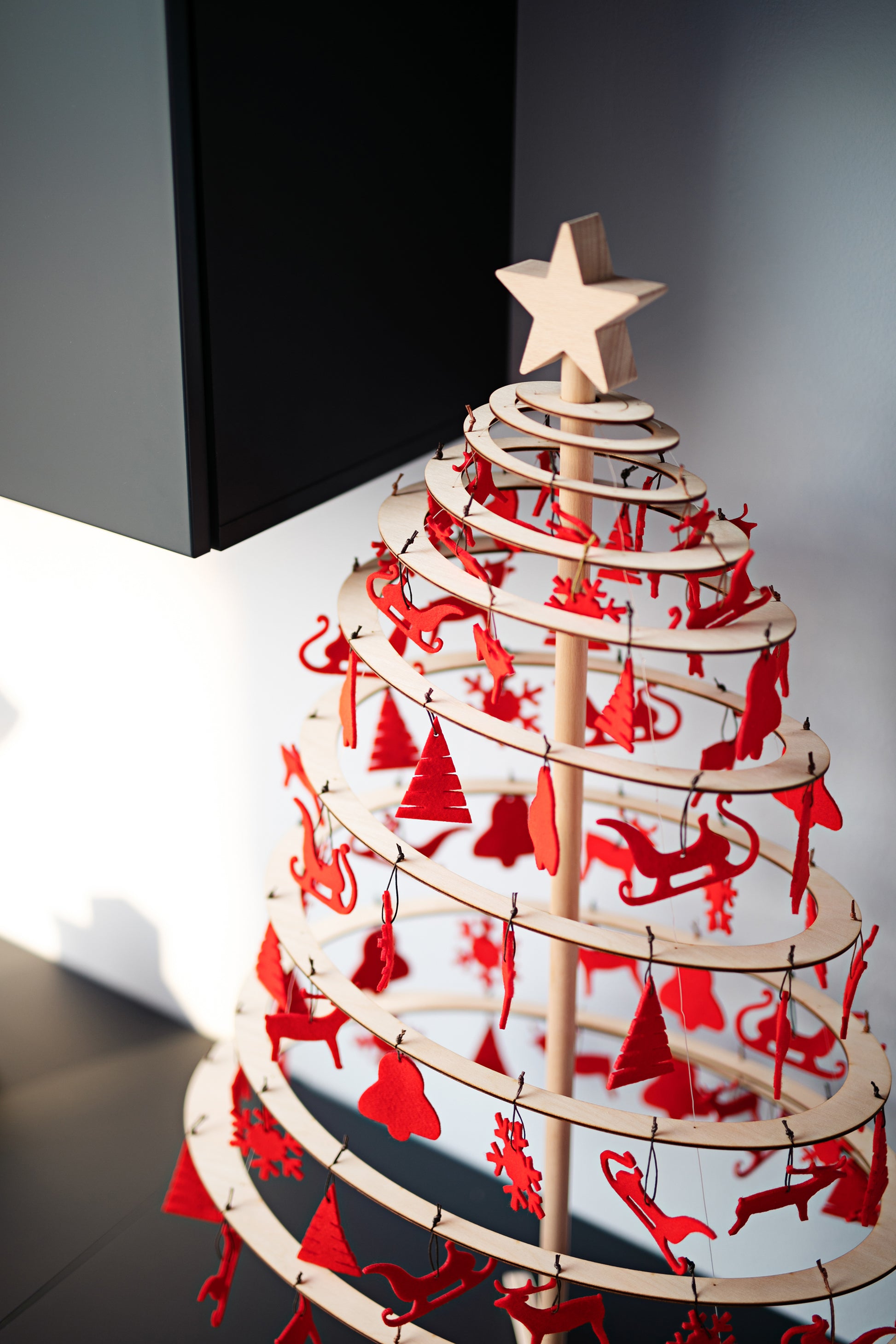 Jokaisen joulukuusen taianomaisin elementti on tähtipää. Huolellisesti muotoiltu tähti Spira-puun latvaan täydentää puupuuta minimalistiseen mutta lämpimään tyyliin. Tähtikuvike on valmistettu pyökkipuusta.